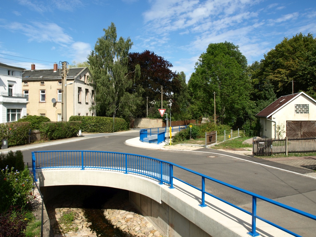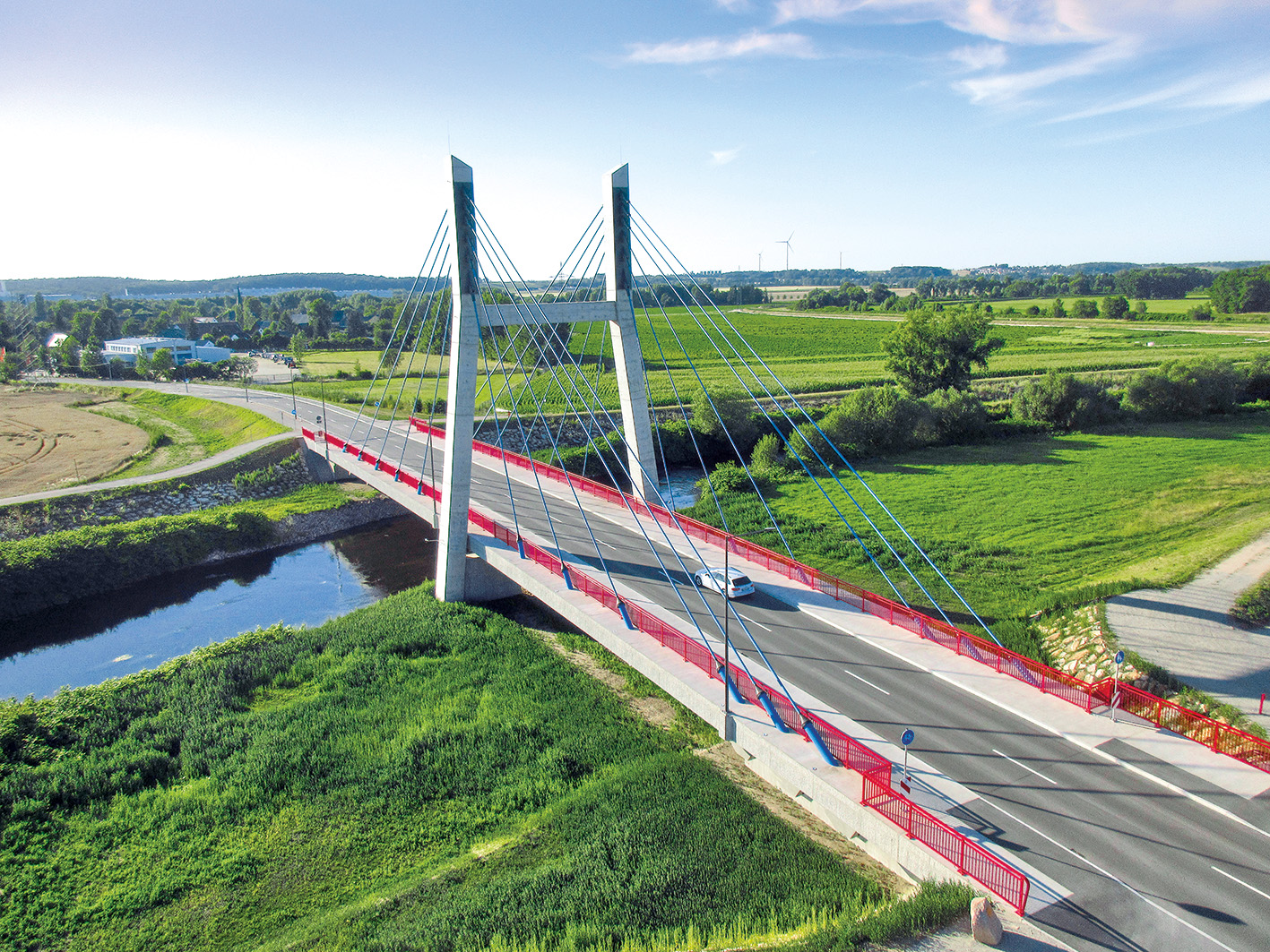 Das ebenfalls vom Ingenieurbüro Schulze+Rank geplante und während der Bauzeit begleitete Bauwerk ist eine 2-Feld-Schrägseilbrücke mit einer Gesamtlänge von 90 m